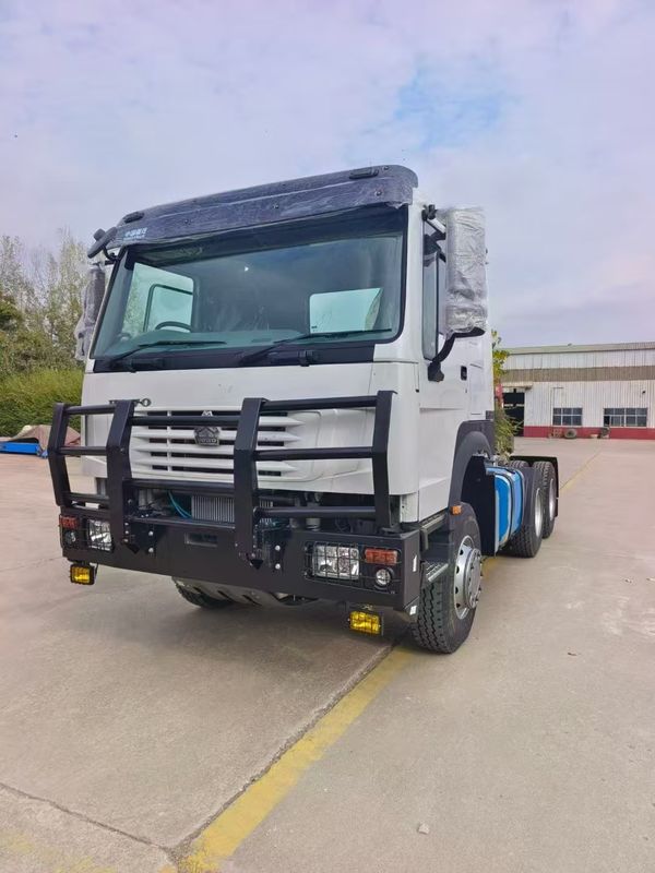Ce tracteur routier HOWO 380 d'occasion est un porteur lourd, prêt pour l'exportation, conçu pour les tâches de transport exigeantes. Propulsé par un moteur de 380 ch (les options de moteur courantes incluent les variantes WP10 / WP12 / WD615 selon l'année et les spécifications), et associé à une boîte de vitesses robuste à 10 rapports (HW19710), ce tracteur routier 6x4 offre le couple et la fiabilité requis pour le fret longue distance, l'exploitation minière et le transport de construction. Les configurations typiques comprennent une cabine HOWO spacieuse (simple ou couchette), une capacité d'essieu avant de 7 à 9 tonnes et des essieux arrière tandem (13 à 16 tonnes chacun) pour des poids totaux en charge élevés.
